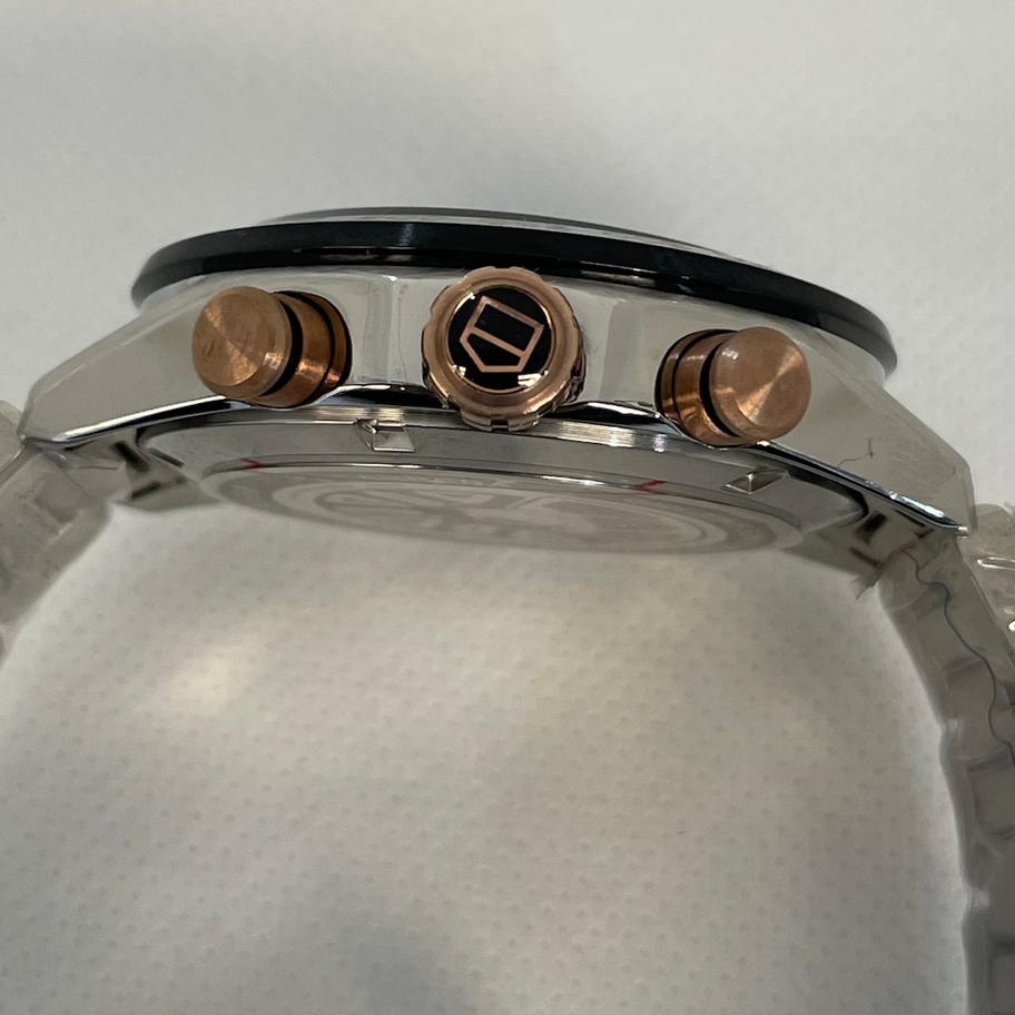 Tag Heuer Carrera Calibre Heuer 02 Black Dial Tachymetre •Caja de Acero Inoxidable •Cristal Zafiro Anti Ralladuras •Bisel de Ceramica •Calibre Japones •Movimiento De Cuarzo •Cronógrafo Funcional •Fechador a las 6 en Punto •Indicador de 24horas •Manecillas e Indicadores Luminiscentes •Broche desplegable •Detalles en Acabado PVD oro Rosa •••REPELENTE AL AGUA, NO ES SUMERGIBLE•••