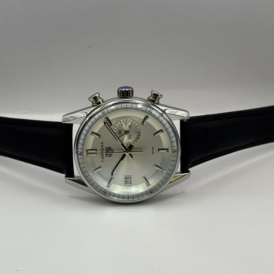 Tag Heuer Carrera Glassbox Chronograph White Dial Leather Strap