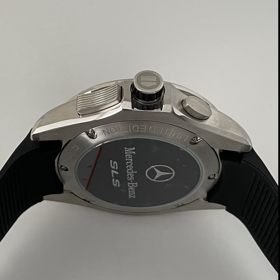 Tag Heuer Mercedes Benz -Caja de Acero Inoxidable -Cristal Zafiro atirrayaduras -Calibre Japones -Movimiento cuarzo -Fechador a las 12 -Segundero independiente -Cronometro Funcional -Indicador de Decimas de ssegundos -Diametro aprox de 46 mm -Contador de minutos -Broche Deployante -Correa de Caucho Perfectamente Grabado •••Repelente al Agua, NO ES SUMERGIBLE••